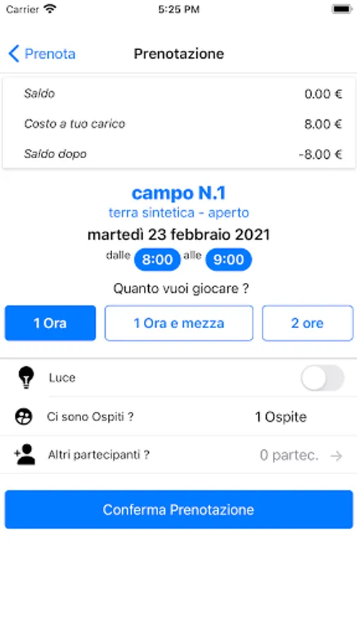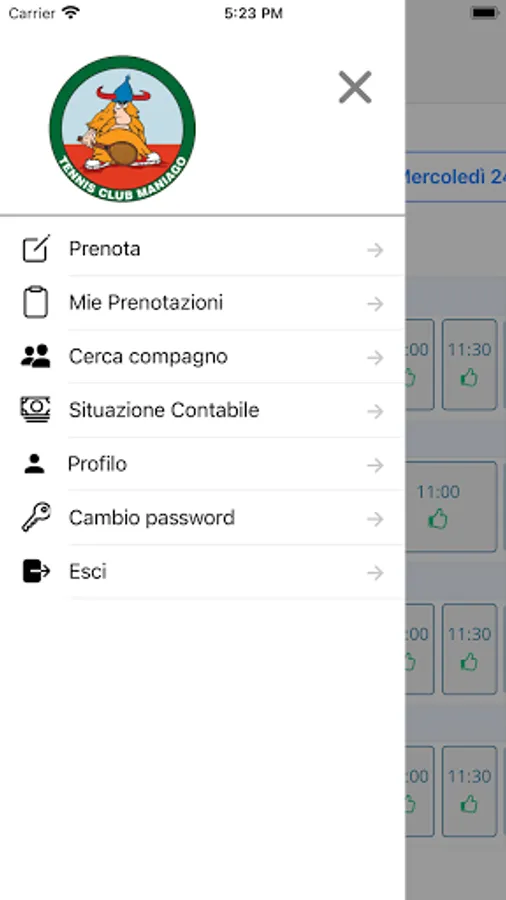 App for booking the courts of the Maniago Tennis Club in the province of Pordenone