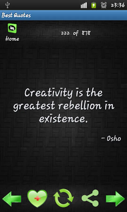 Best Quotes app is a collection of over 878 carefully hand picked quotes from all over the internet. It contains saying/quotes on Chuck Norris, Creativity, Friendship,