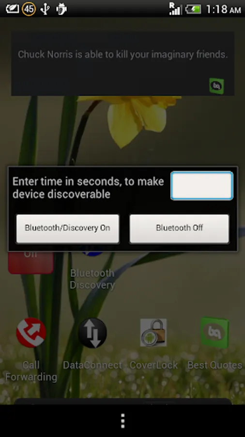 -If Bluetooth is off, this widget will turn on Bluetooth and make it discoverable for 'x' seconds set by user in widget.