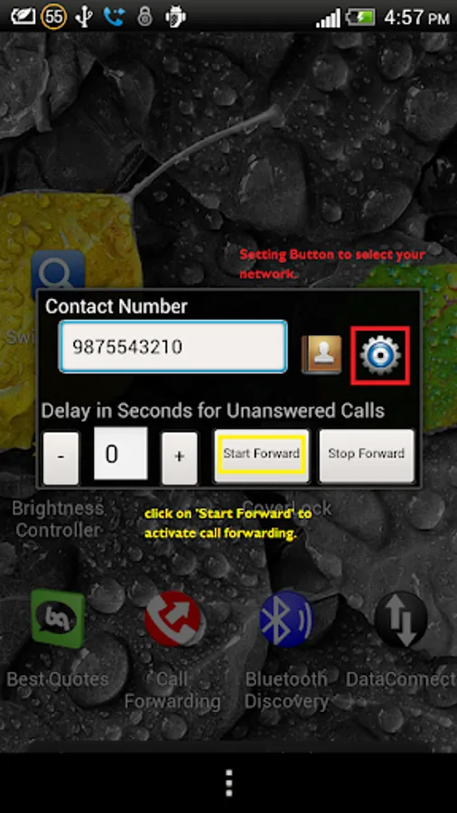 This App is very useful to you if you require frequent call forwarding to other numbers. Instead of going to settings then call settings and then call forward settings and then finally configuring your call forward, you can simply configure call forwarding in one click using this app.