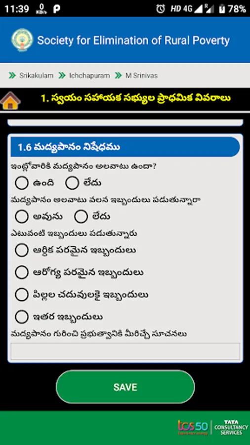 Family investment opportunity survey .Application is used for capturing member livelihoods and training.