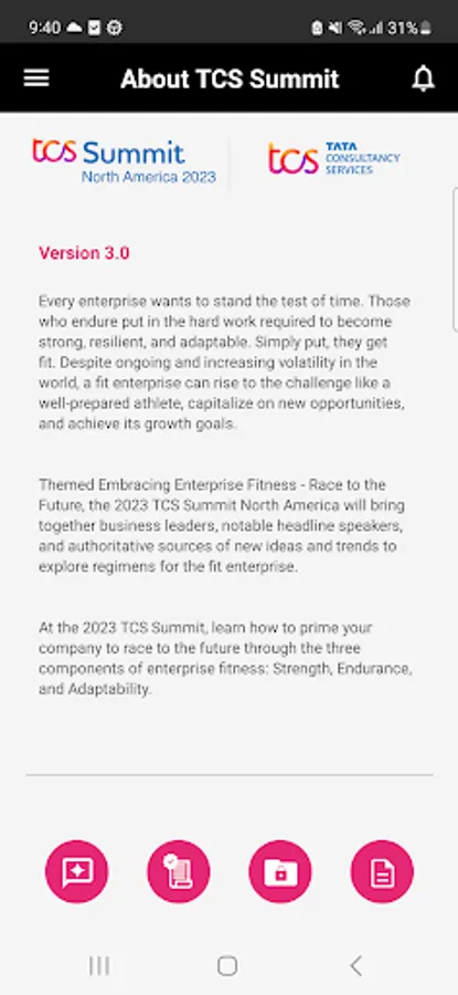 This app will give an overview of the TCS North America Summit 2023 covering the agenda, speaker profiles, participants, and other important information related to the event.
