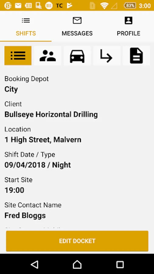 If the user of the app is set as a Team Leader for the shift, then he/she can create a Docket and enter the following information on it: