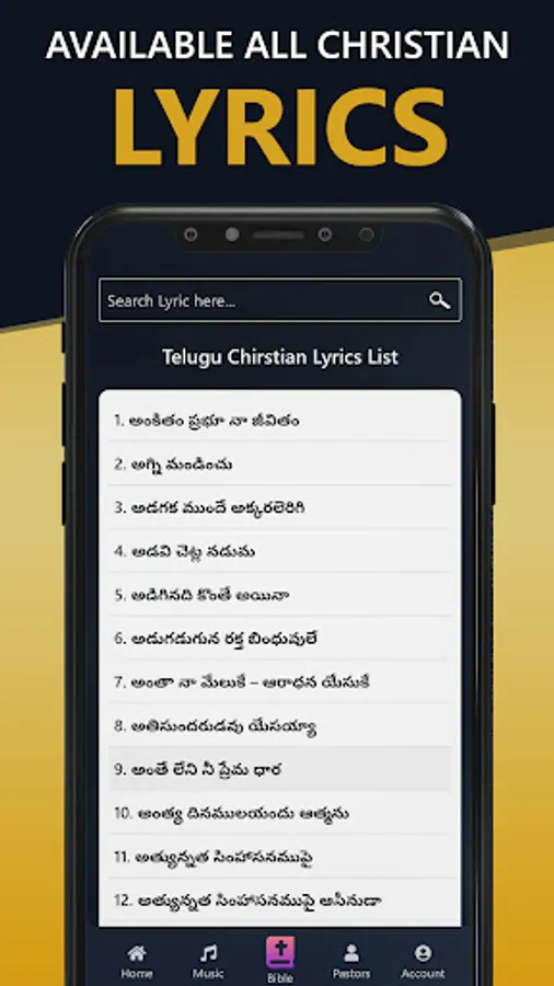 This App helps you to carry over 5000 Telugu & English Christian Songs with Lyrics.