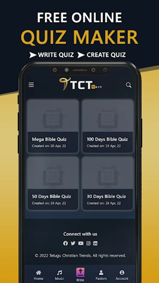People can Create Quizzes their own, this app helps to test your biblical knowledge
