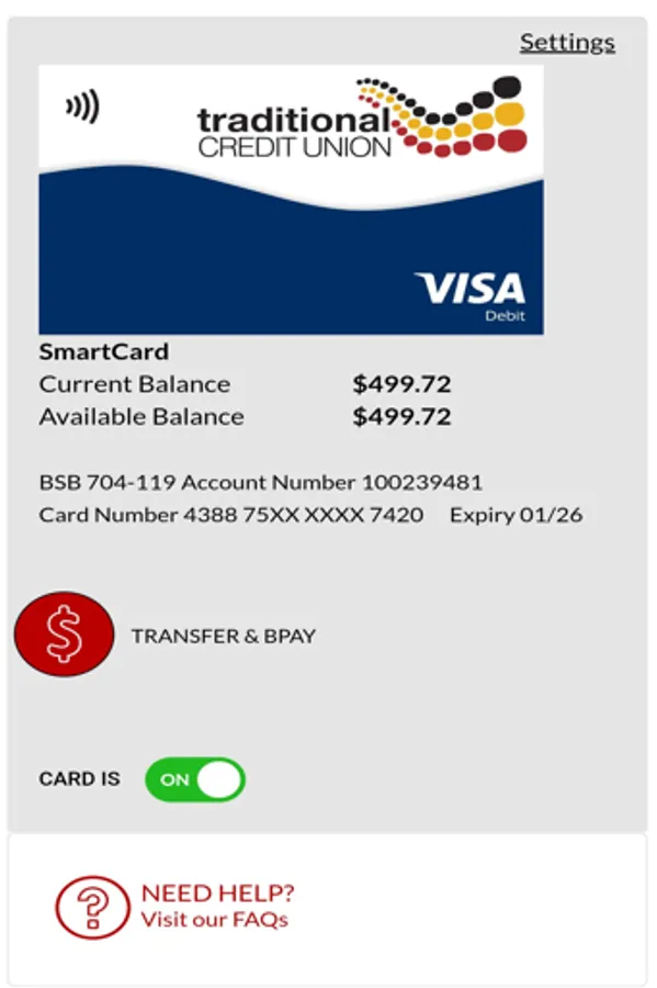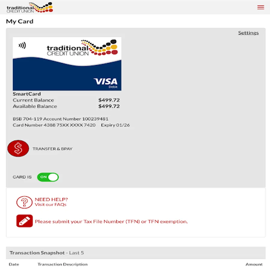The TCU SmartCard eIM App is designed for cardholders to access their SmartCard enhanced IM account on the go. You can: