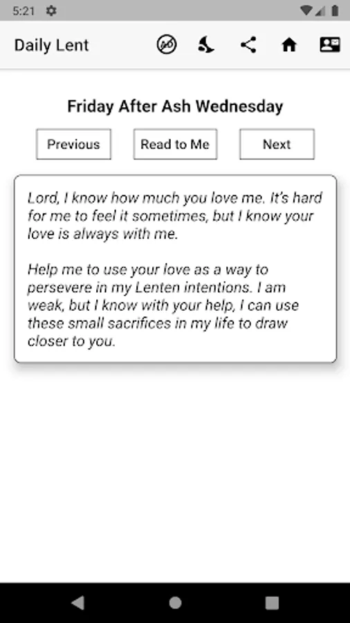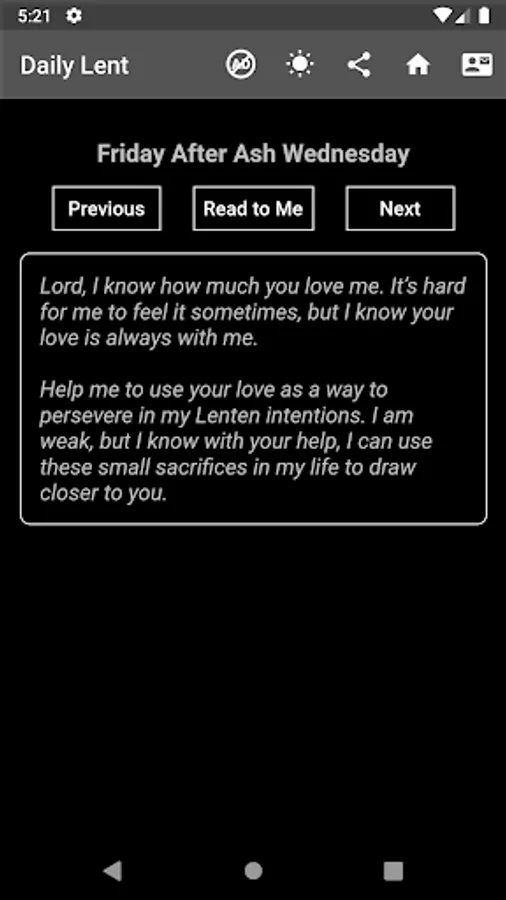 - Quick access to a series of daily prayers to help you deepen your relationship with God.