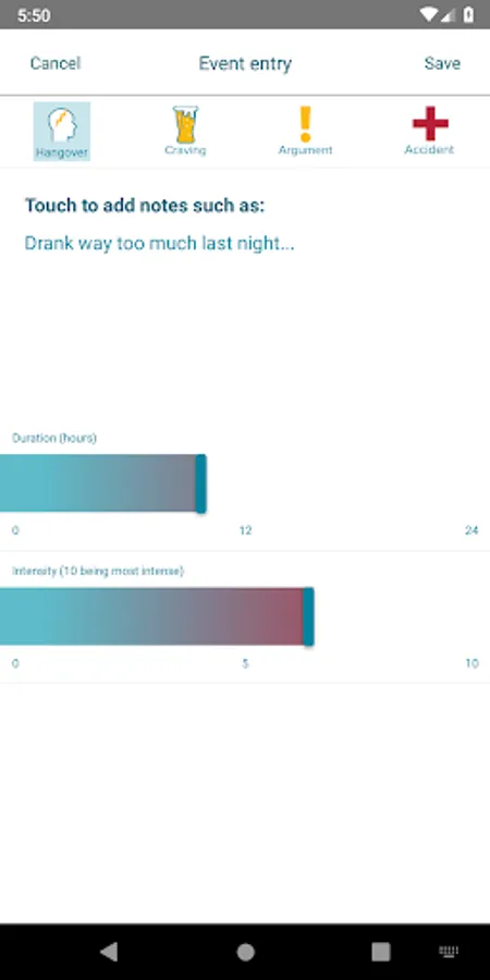 • Track hangovers, arguments, cravings and accidents associated with your drinking via a CBT diary