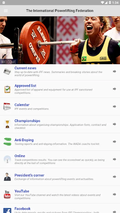 The IPF-NEWS mobile app also includes , news, events,youtube chanel,anti-doping and powerlifting online .