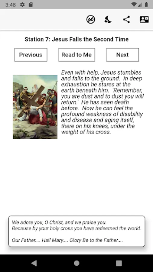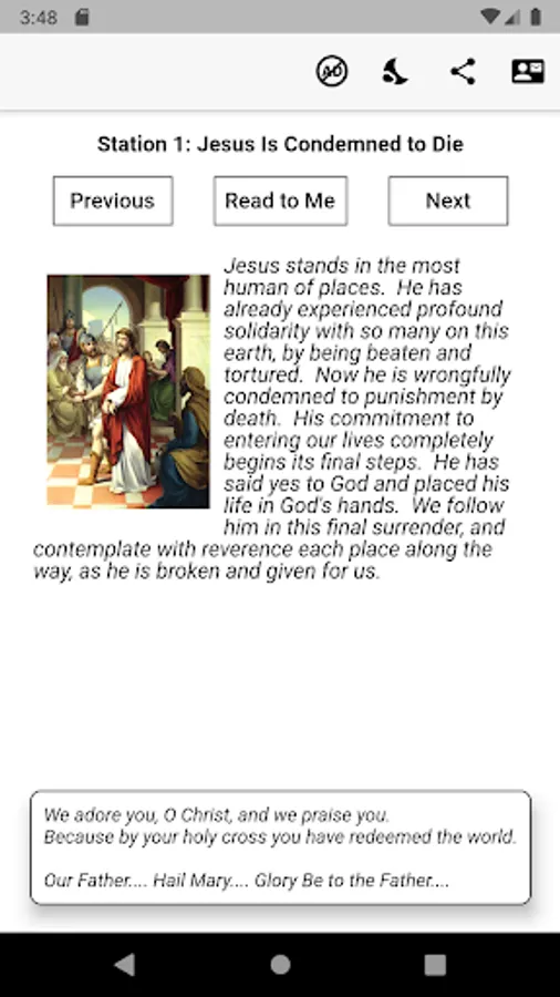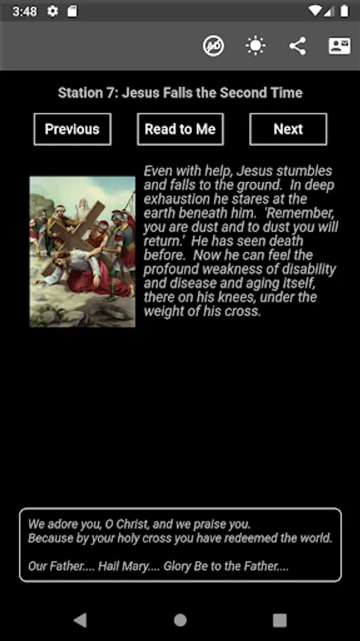 This app is developed for you to have easy access to the fourteen stations anywhere you go and at anytime. You may also choose to share any station in which you find particularly meaningful to your friend and family members easily via the app. There is also an optional dark theme which improves reading in the dark. (Tap on top left icon to toggle it)