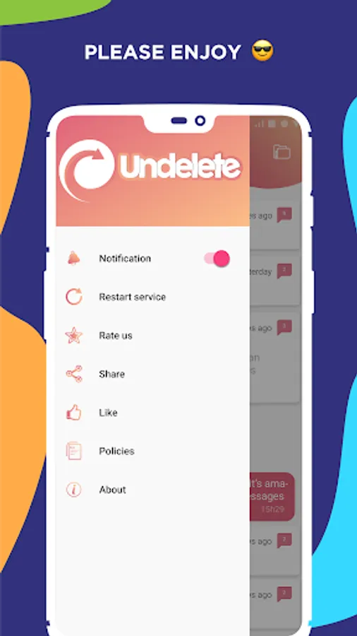 - Undelete works with Android Notification, so please make sure that notification access is granted for good usage.