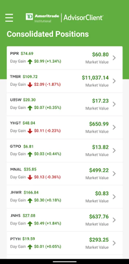TD Ameritrade’s AdvisorClient Mobile allows you to stay connected and keep up to date on your investments, when you’re on the move. Use it to gain access to account information, watch lists, and research wherever you are from your Android device. Created with a focus on convenience, AdvisorClient Mobile offers quick and easy access to your account balances, positions, transaction history, and more.