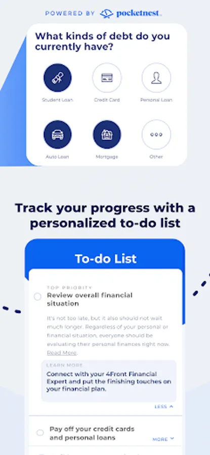 TFO OnTrak, powered by Pocketnest, will coach you to create and stick to a comprehensive financial plan—that’s unique to you, your lifestyle and your goals. Link your accounts to get an even more complete and personalized plan.