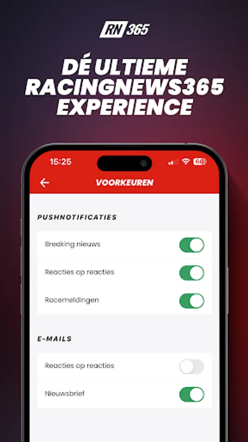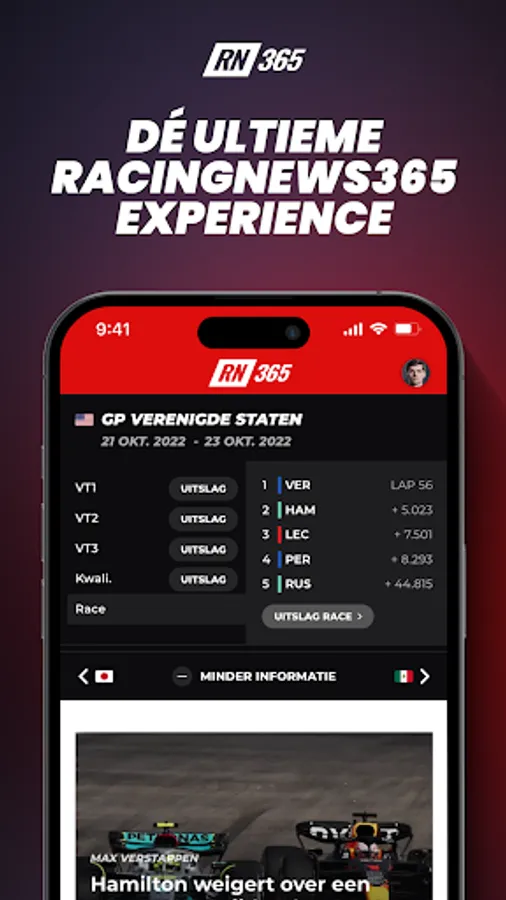With the app you can experience RacingNews365 even better on your mobile. Always the latest news and, among other things, our live blog during races right under your thumb. Thanks to personalized push notifications, you won't miss a thing. Like the site, the app is of course ad-free. You also enjoy many other extras!