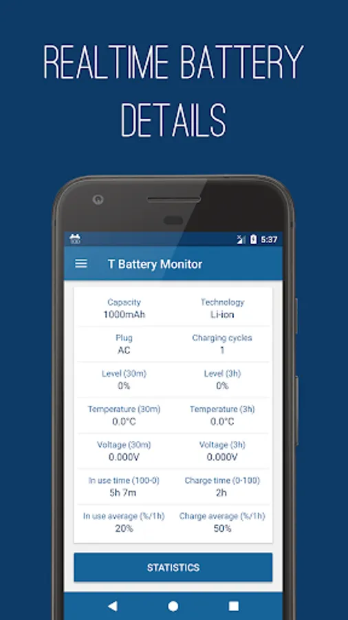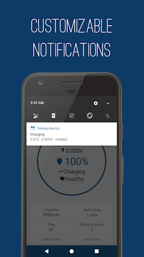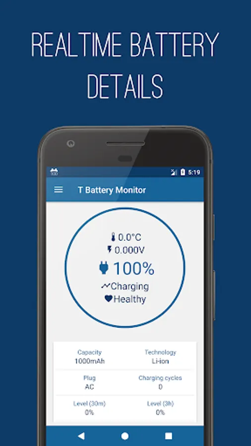 T Battery Monitor shows the battery charge level and the remaining life based on current use; Also checks temperature, voltage, health, capacity and technology.