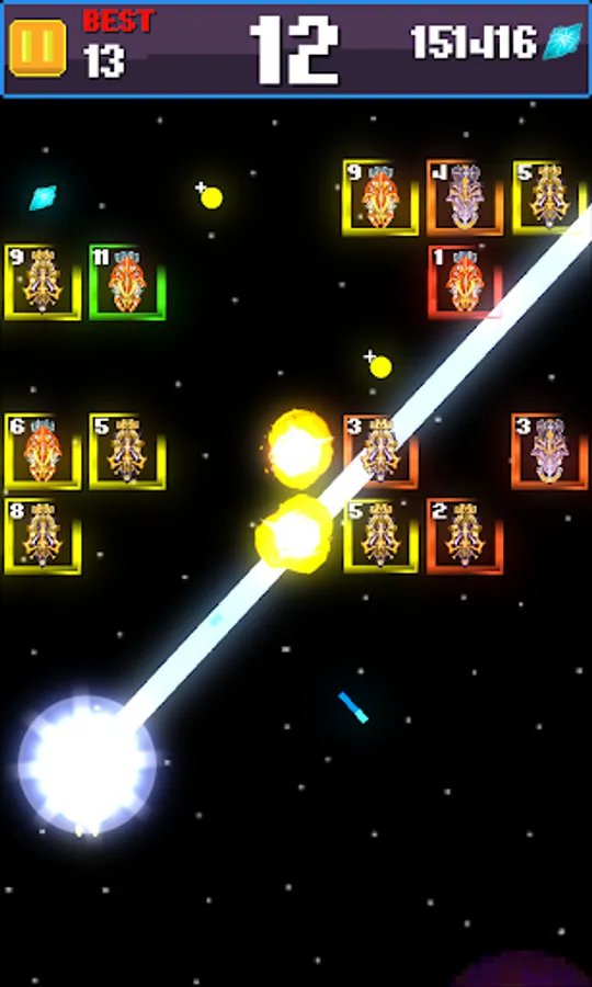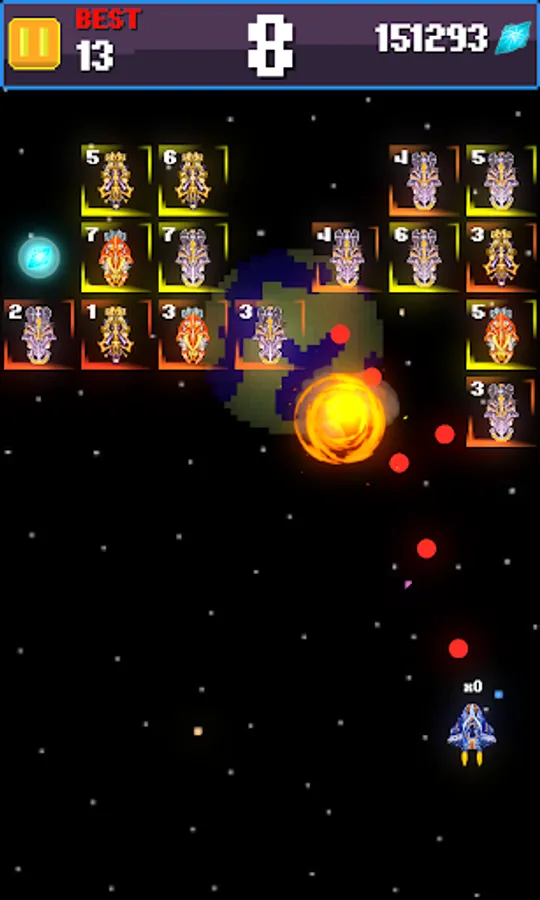 ★ You score like a brick breaker: Balls bounce off of alien ships, dealing damage on each hit.
