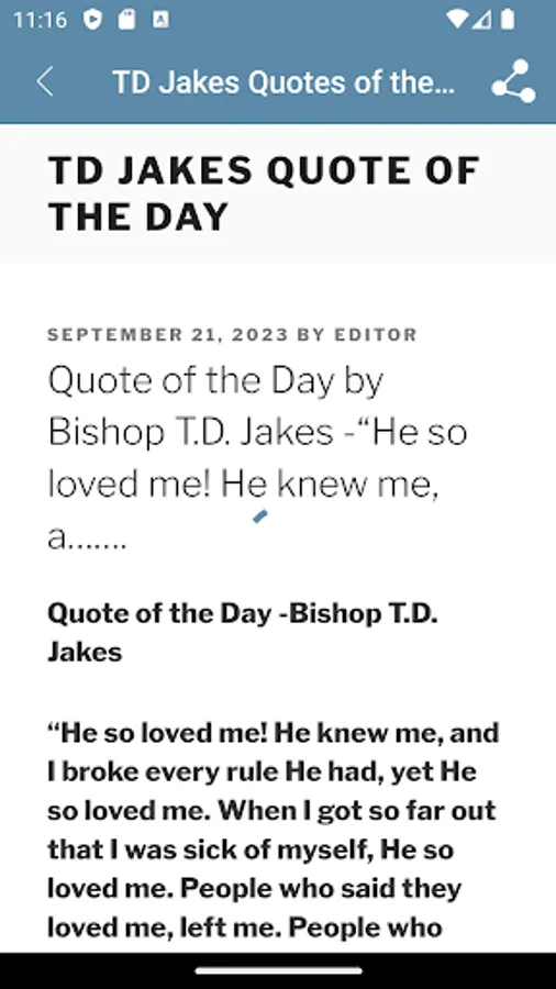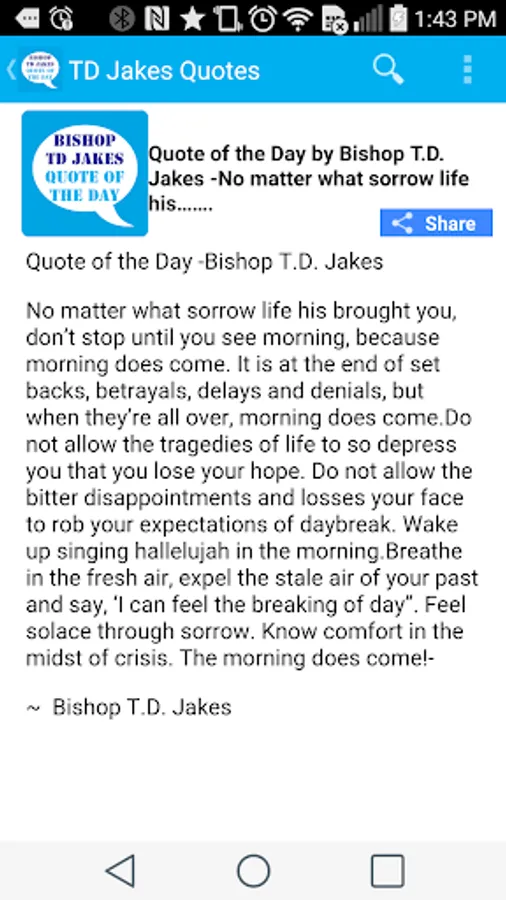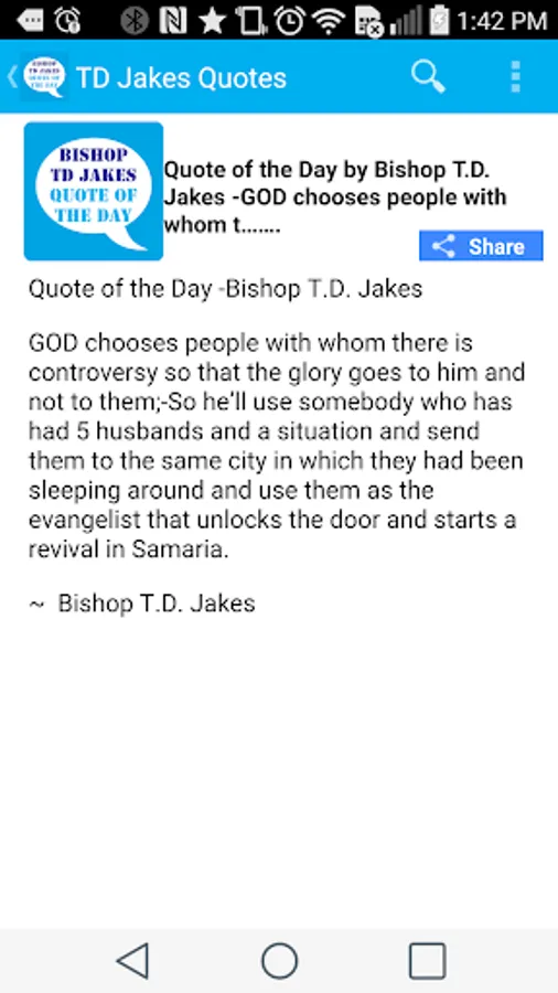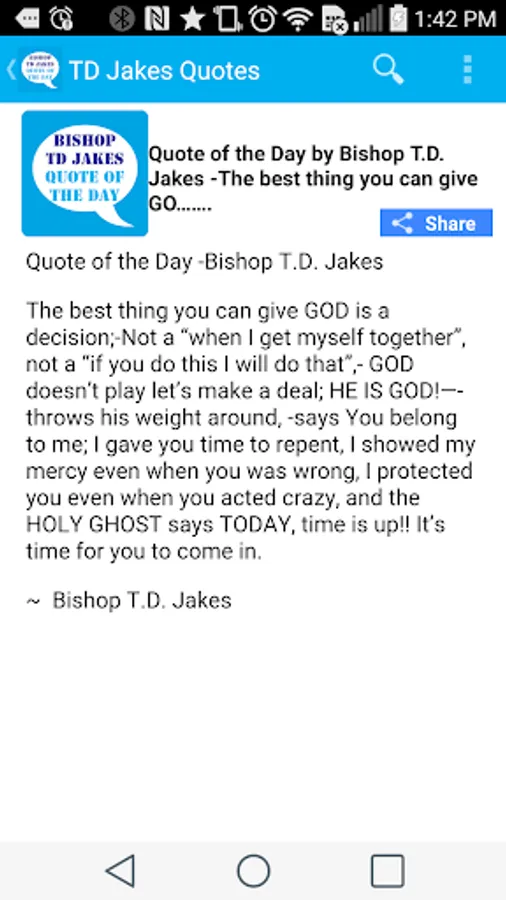 6. Accessible Wisdom: Whether you're at home, on the go, or in need of a quick dose of inspiration, the "TD Jakes Quotes" app ensures that Bishop T.D. Jakes' transformative wisdom is always at your fingertips.