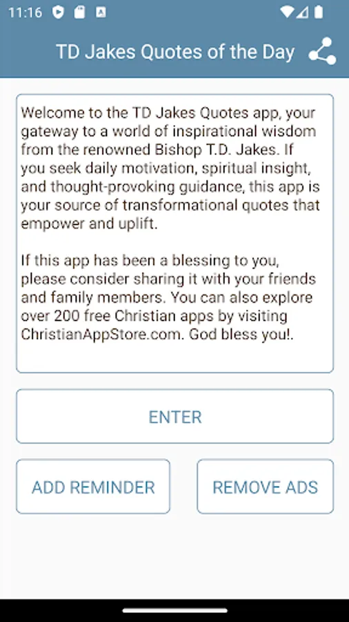Download the app today and let Bishop T.D. Jakes' words of wisdom be your daily companion on your journey to personal and spiritual fulfillment. Start each day inspired and ready to conquer life's challenges with unwavering faith.