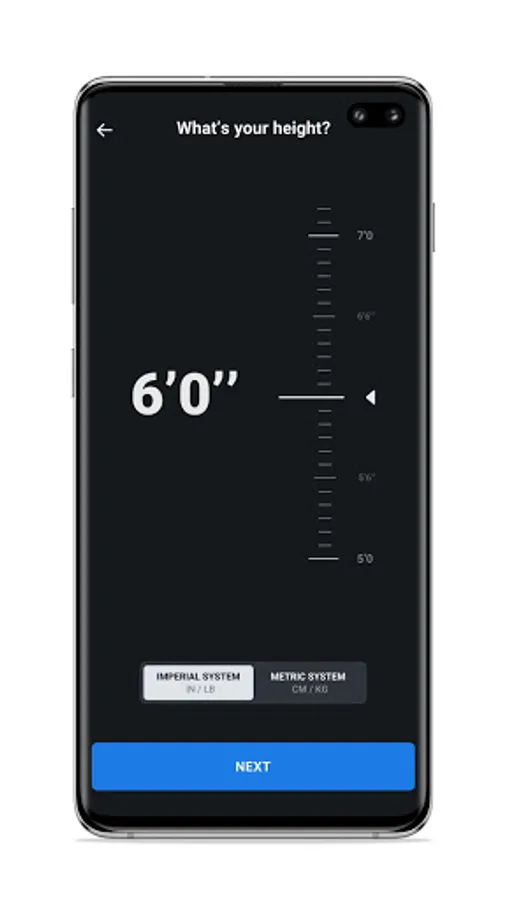 - Imperial (inch/lb) and Metric (cm/kg) units