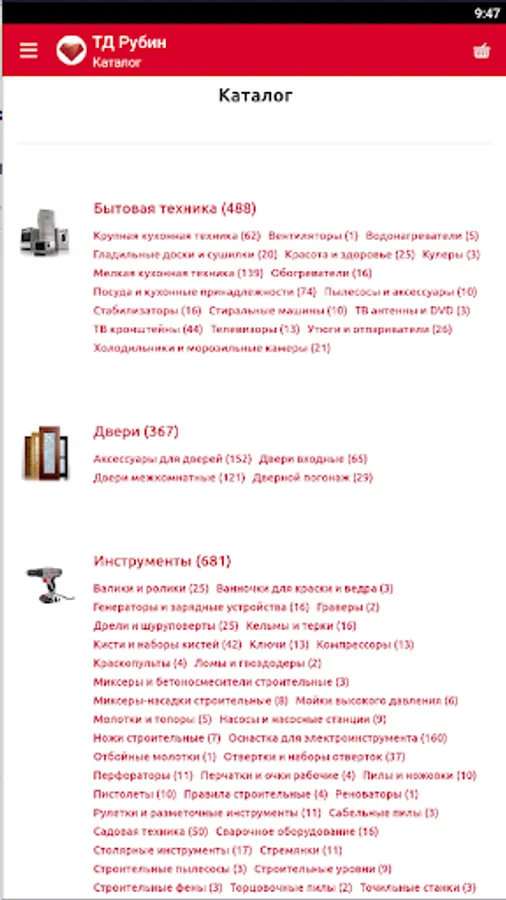 The mobile application of the Rubin Trade House company - the official representatives in Abkhazia of such world brands as Midea, WestLake, Henkel and many others. Here you can buy household appliances, tires, doors, furniture, plumbing, tools and construction products.