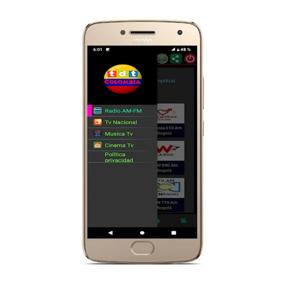 TDT Colombia 24/7 is an open and free signal channel tuner called TDT (Digital Terrestrial Television) or FTA, with a single Click you can enter the online programming of Radio Stations in the capital and Colombian Television, where you can enjoy all national and international channels and content anywhere in the world with your Internet service. Keep in mind that some TV channels in some countries by geographic region will not be able to be viewed.