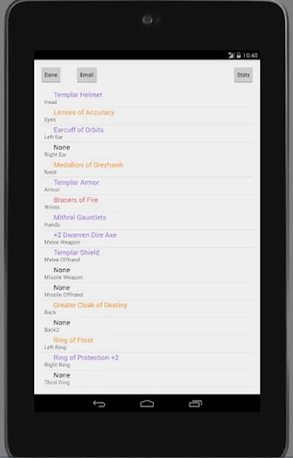 Create your character, give her a name and select your class. Edit the character to select your tokens for each slot. Only tokens available to your class and setup will be shown. After building your character check out your final statistics. Help ensure that all your valued tokens are counted in your stats.