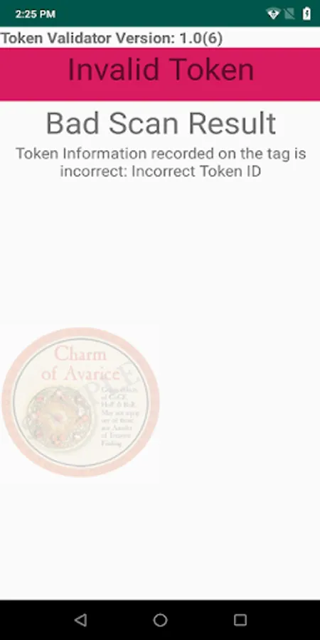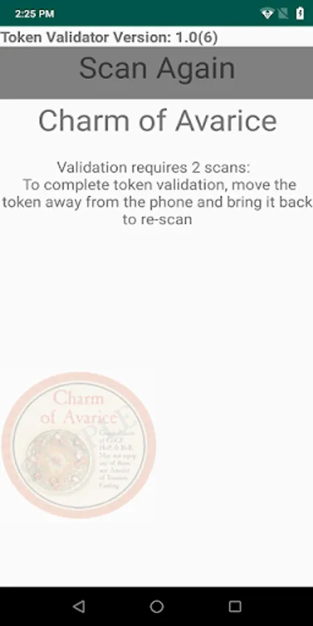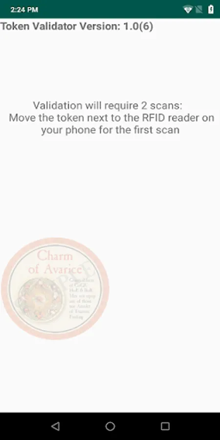 This simple app will allow you to verify the authenticity of your Charm of Avarice based on the RFID tag built in. Simple to use, but thorough in design, this app will validate your token as well as it can be.