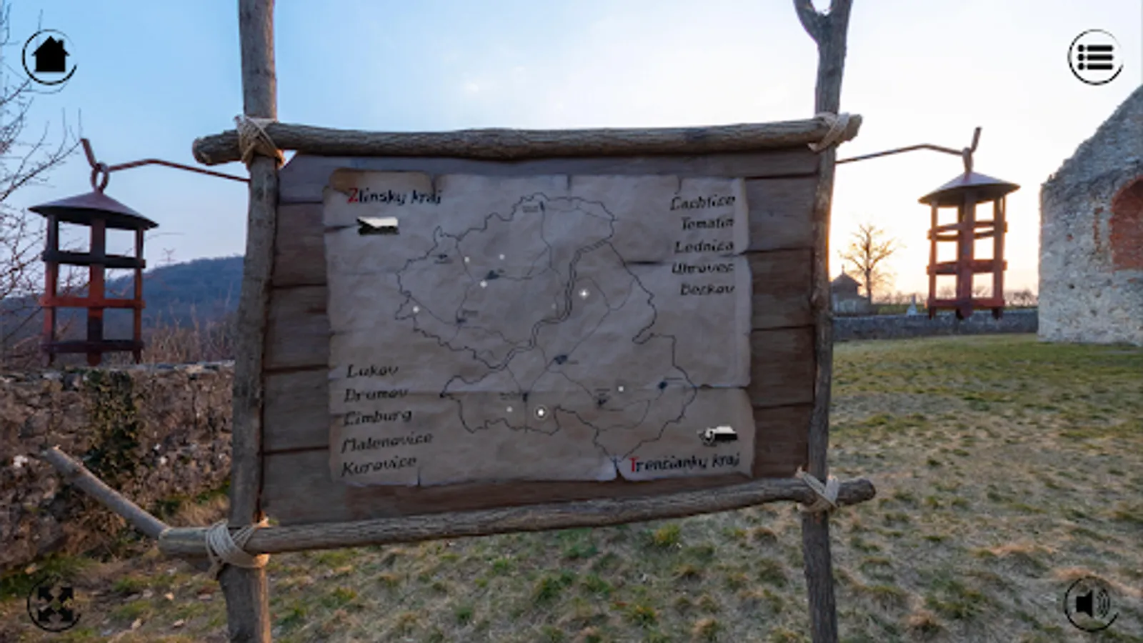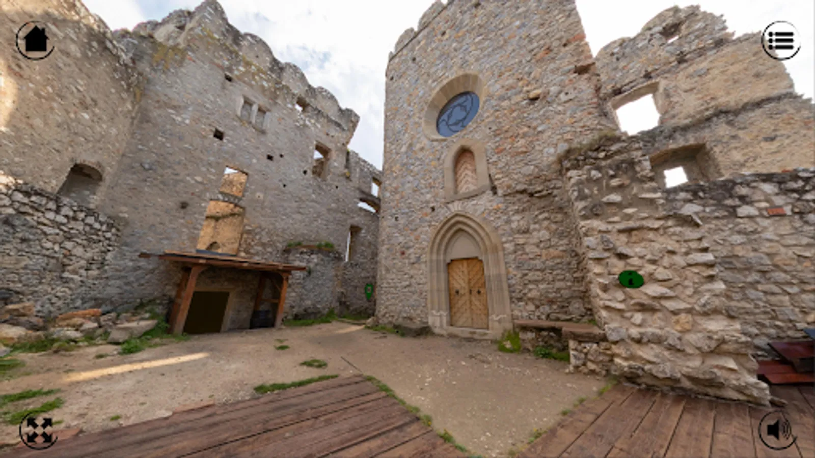 Project results: The output of the project is a complete product in the form of a single application containing 10 virtual tours that evaluate the common cultural heritage from the Middle Ages. Virtual tours consist of castles located in the Trenčín and Zlín regions, which are: Beckov, Tematín, Čachtický, Lednica, Uhrovský, Brumov, Lukov, Malenovice, Kurovice and Cimburk castles.