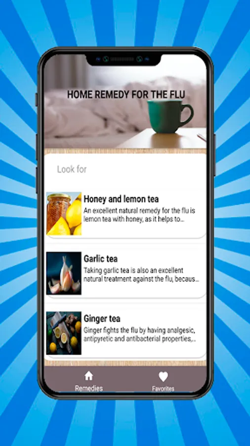 "Home Remedies for the Flu is a mobile application designed to provide natural and effective solutions to relieve the symptoms of the flu. The application has a wide variety of home remedies, all of them based on natural and readily available ingredients.