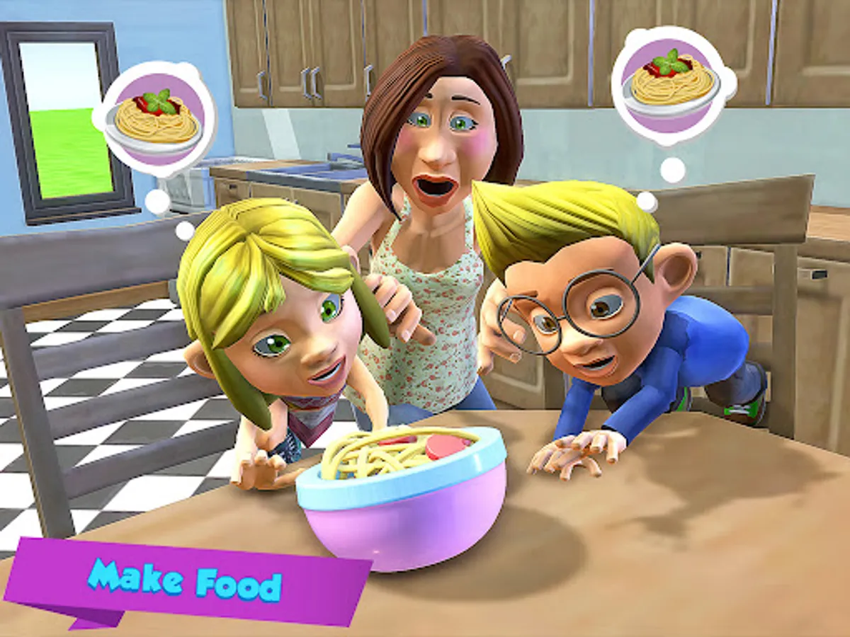 Babysitter and nanny is also absent you need to cook food as family practice for your kids they are hungry. Give bath to children and dress up them in this new mom game. Drive your car fast because you have very little time to reach grocery super market for shopping as working mom. Create different task report in the office take their printouts and submit it to you boss. Go to parking lot sit in the car, drive car to bank to pay utility bills in virtual mother family simulator as helping mum. Then went to school pick children and take them home safely in working mom simulator game as real helping moms. Cook yummy food for your virtual husband and deliver him on table in this virtual wife mania game. Enjoy real family adventure as incredible mom and caring of newborn twin babies in real family games for free. Perform exciting tasks in this new baby twins virtual mother family fun time in this life simulation game.