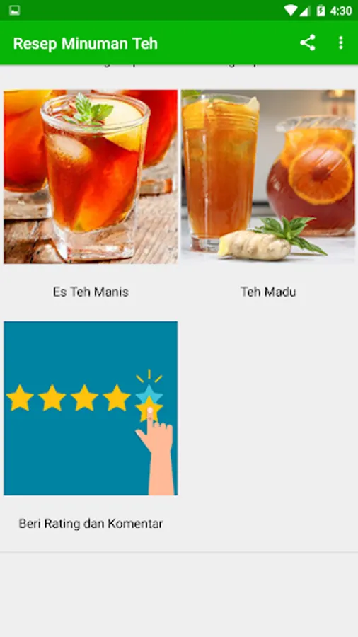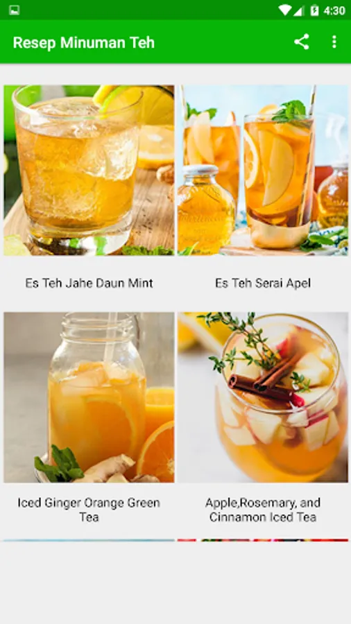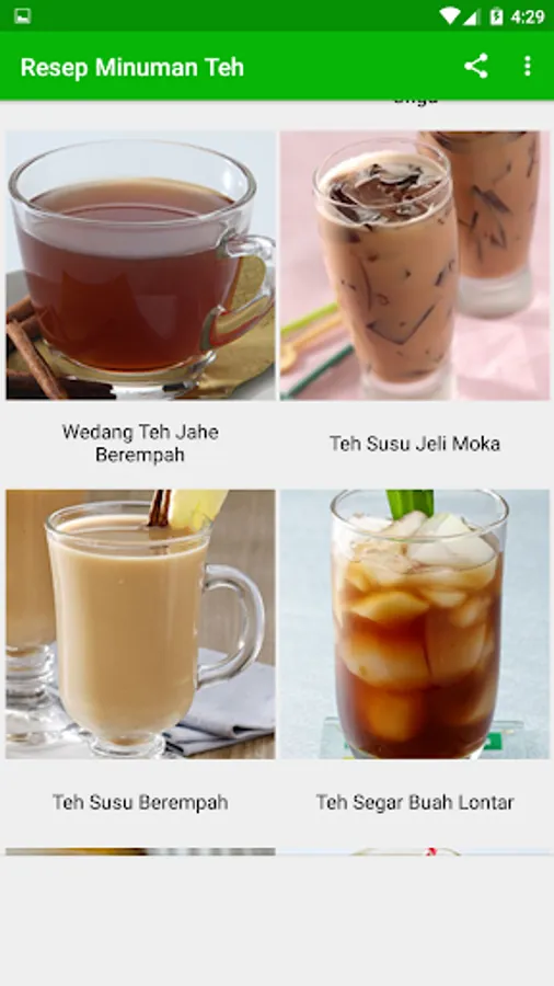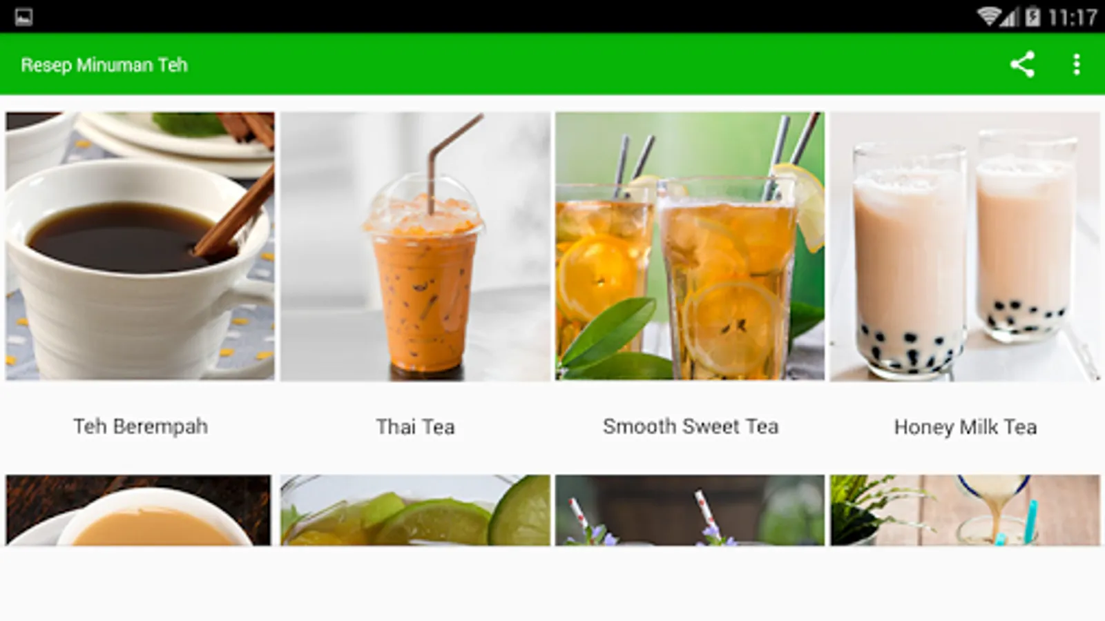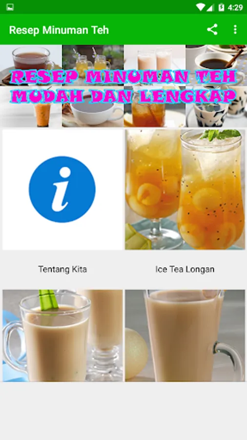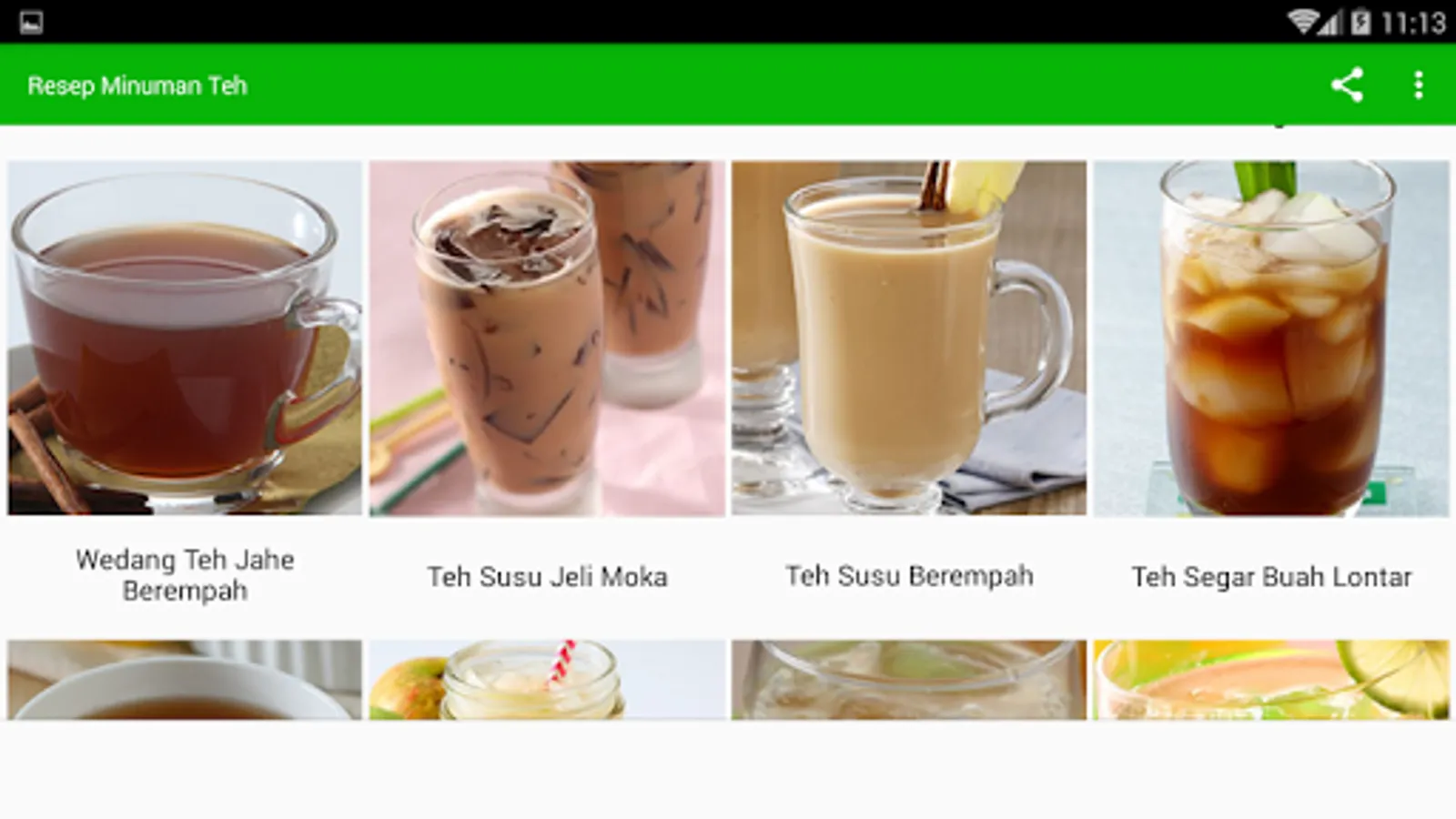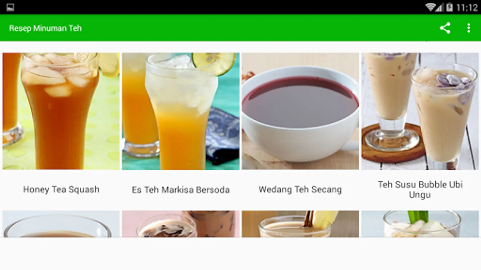 In this Tea Drink Recipe application, there are several tea drink recipes that are worth trying such as Longan Ice Tea, Warm Milk Tea Wedang, Spiced Milk Tea Wedang, Secang Tea Wedang, Honey Lemon Tea, Spiced Tea, Thai Tea, Ginger Tea Wedang, Teh Tarik, Ice Tea Milk Cincau and many other interesting recipes.