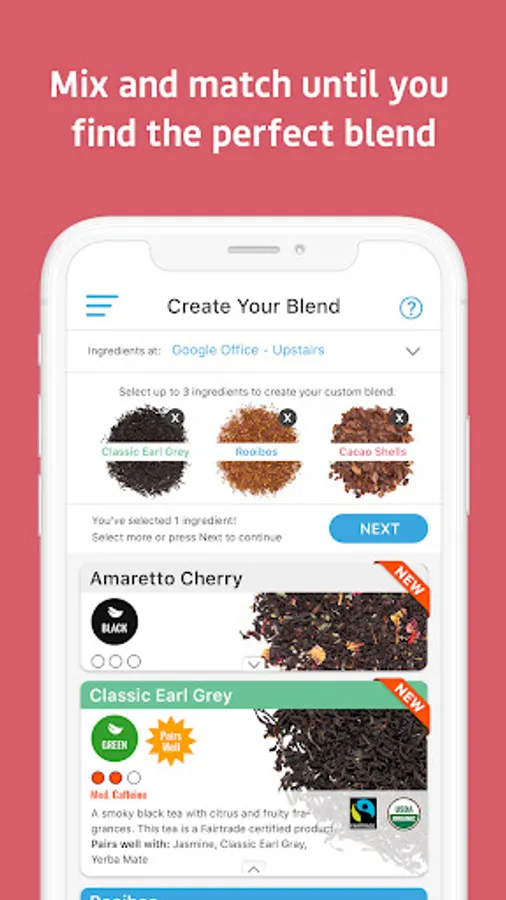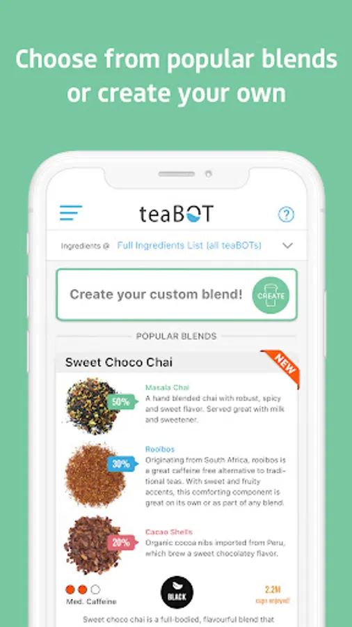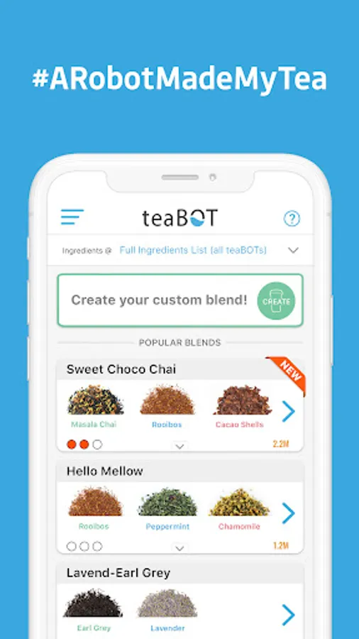 Create, save and order tea blends at your teaBOT.