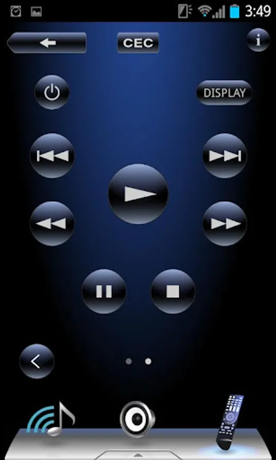 • Operates general remote-control functions (e.g. play, stop, power on/off)
