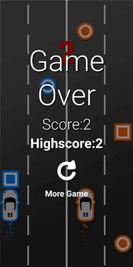 - Control the red car and the blue car at the same time. Collect all the circles and avoid the squares on the road.