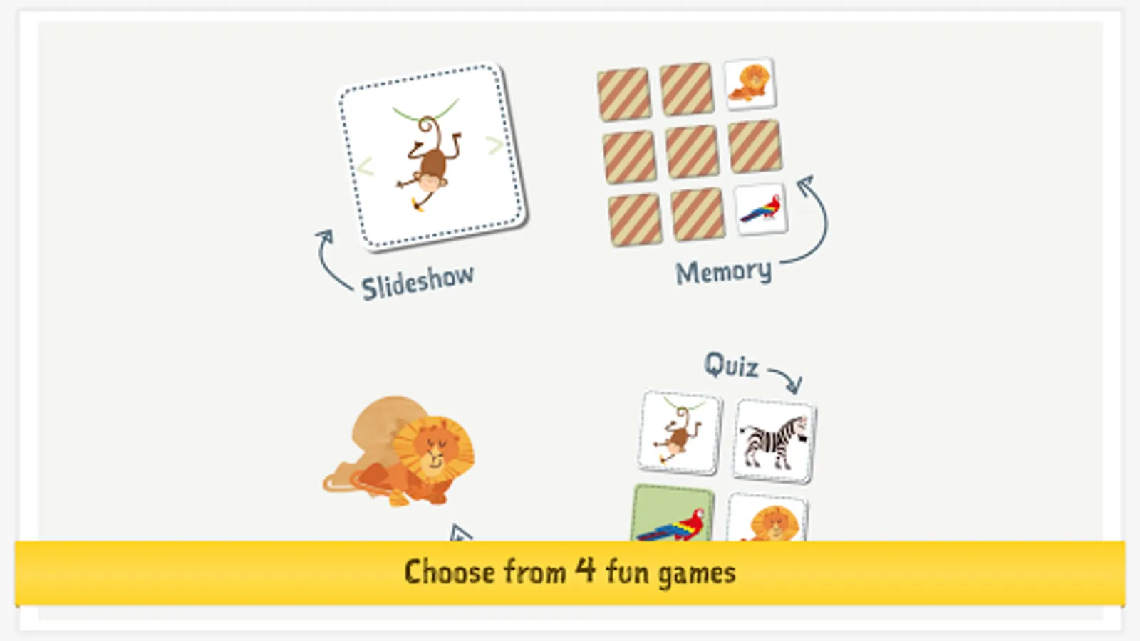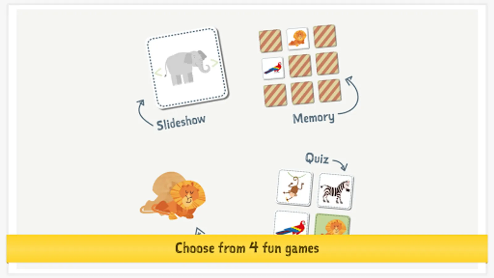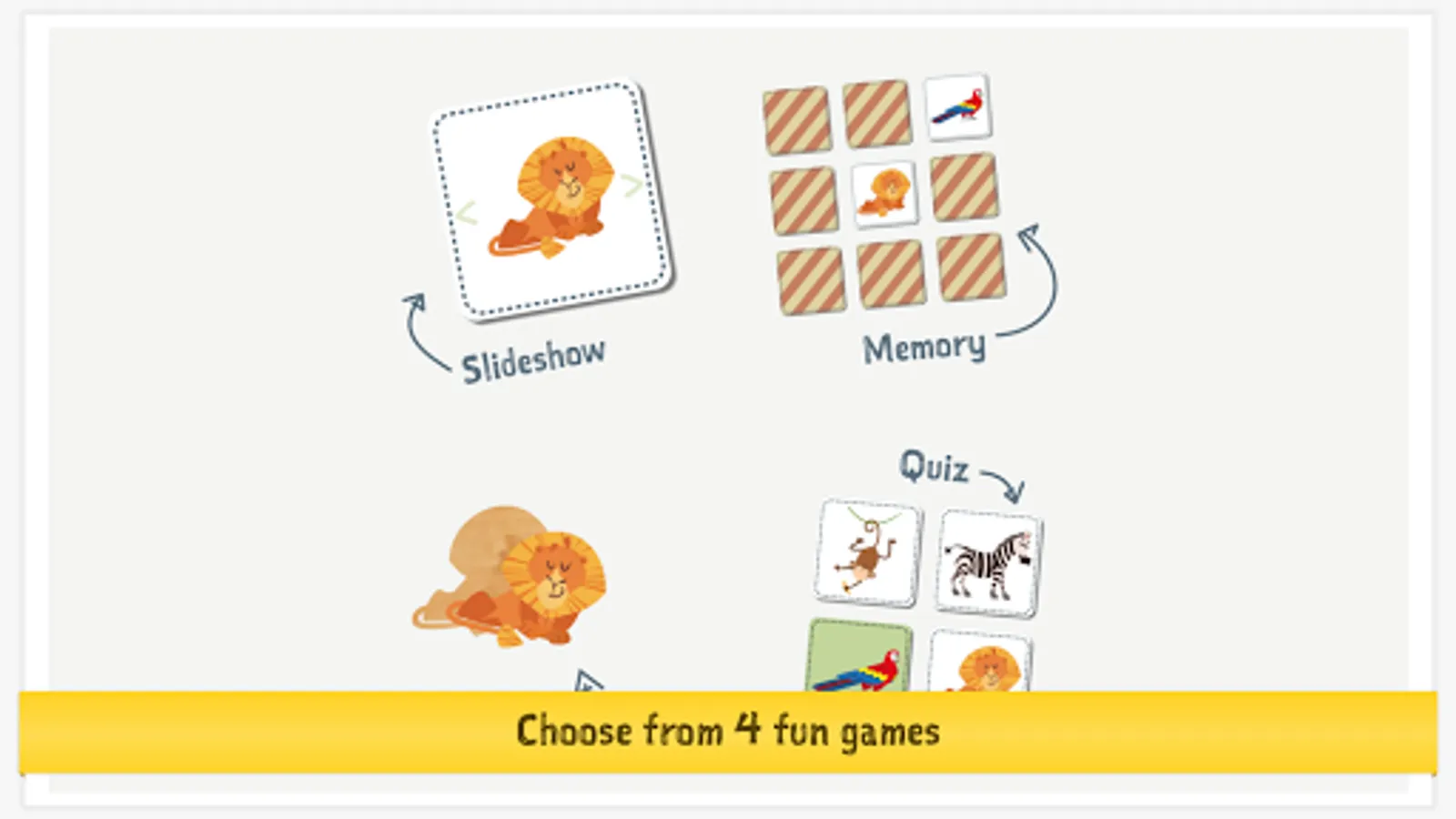 • Learn and play: challenging games (slideshow, concentration game, puzzle, and quiz).