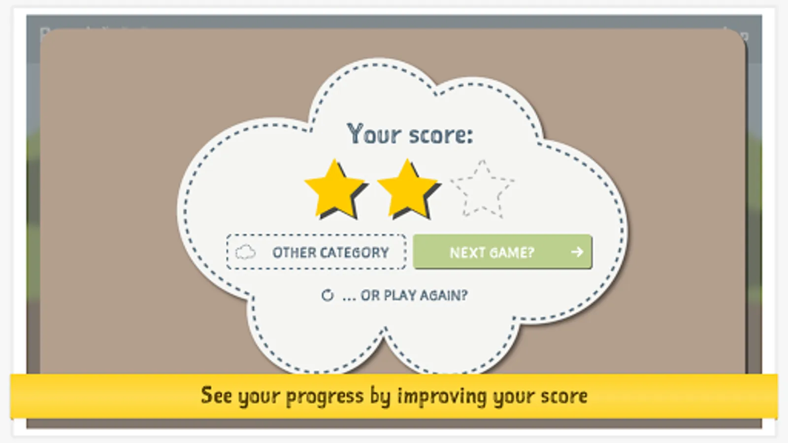 Listening and reading skills of children are measured by the app, and can be viewed by parents and supervisors. The results can be filtered by category and skill.