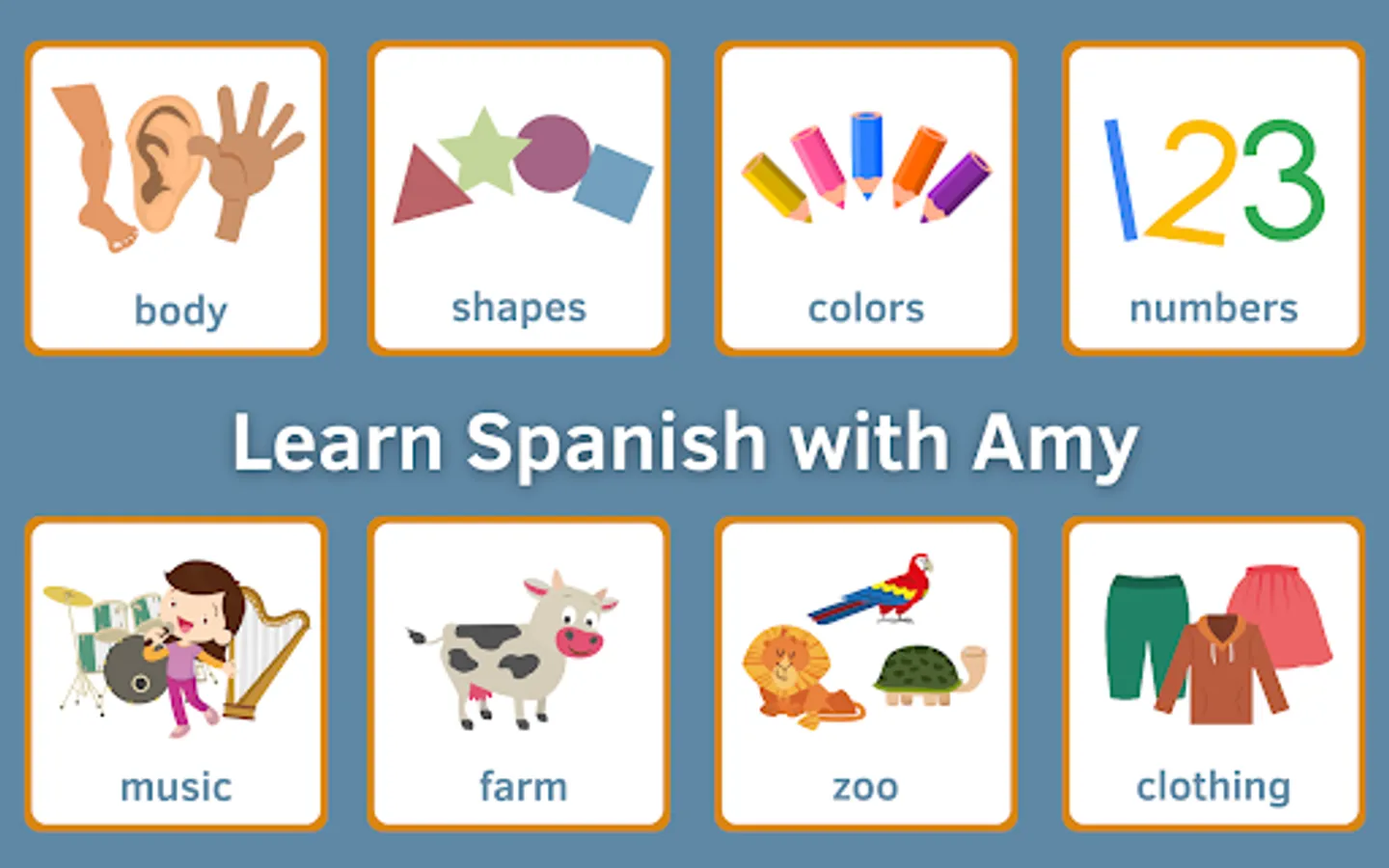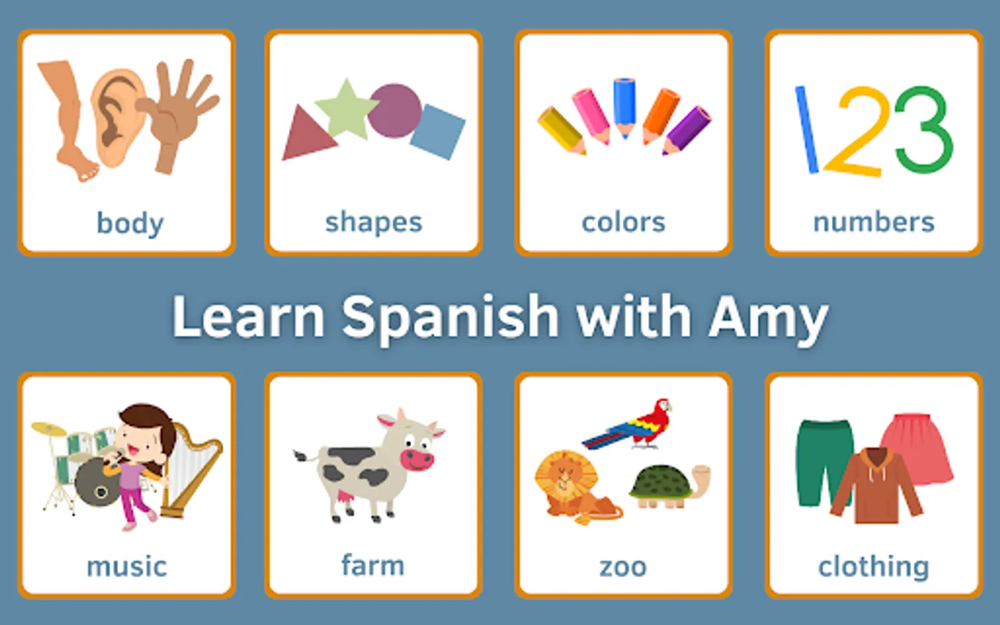 Learn Spanish With Amy offers several fun and interactive preschooler games that teach kids in the following areas: