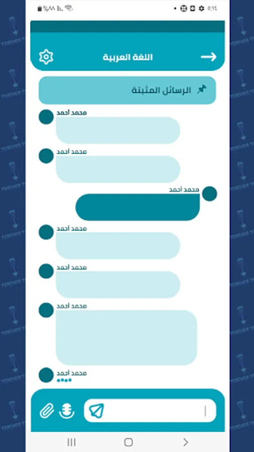 7- تحتوي شاشة الدردشة داخل الغرف على خيار الرسائل المثبتة تساعد المعلم في وضع المحددات والضوابط المطلوبة حسب موضوع الغرفة.