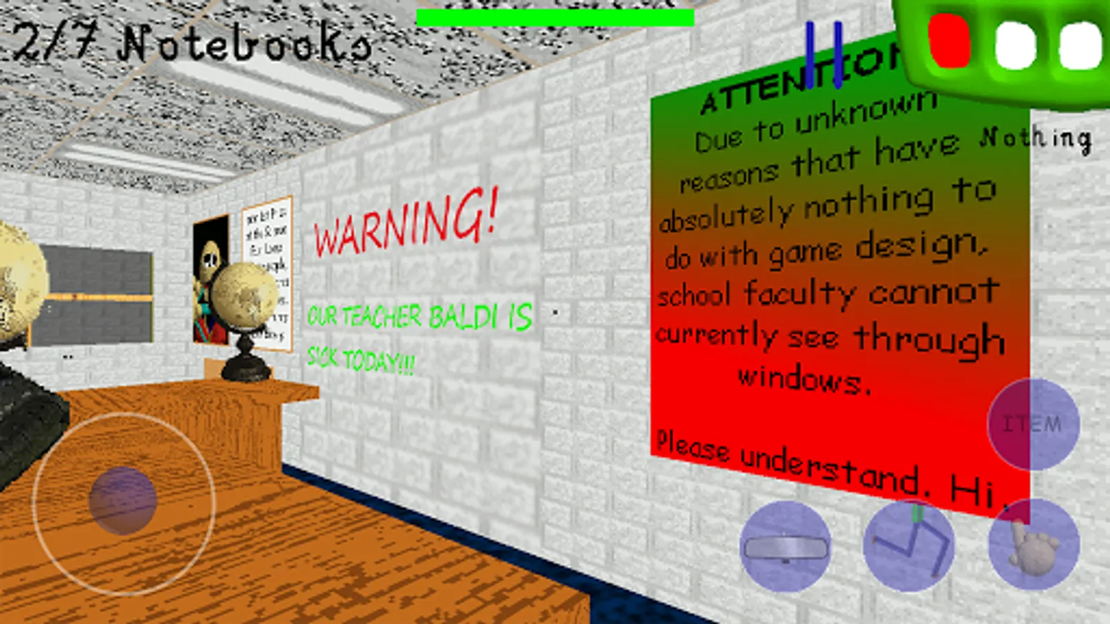 Because baldi is sick today we must learning math and education by our self, we know that baldi is sick so baldi doesn't teach for a while and thats why you still attend to this school. It's like free time at baldi school without baldi is sick slapping or catching you when answering wrong 7 notebooks. This time whenever you answer wrong math problems baldi is sick will take a break and leave the baldi mystery parody 3d horror school game to meet doctor because baldi feels sick and dizzy, no baldi no punishment it's really good time to enjoy the class room.