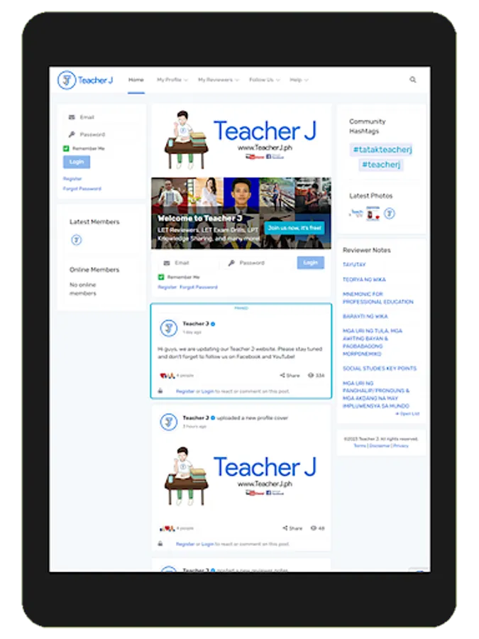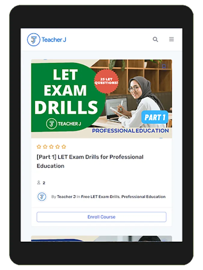 Welcome to Teacher J! Come and join our humble app where we share LET Reviewers, LET Exam Drills, and other Knowledge Sharing materials to become one of the Licensed Professional Teachers in the country. It's free to join and always will be!