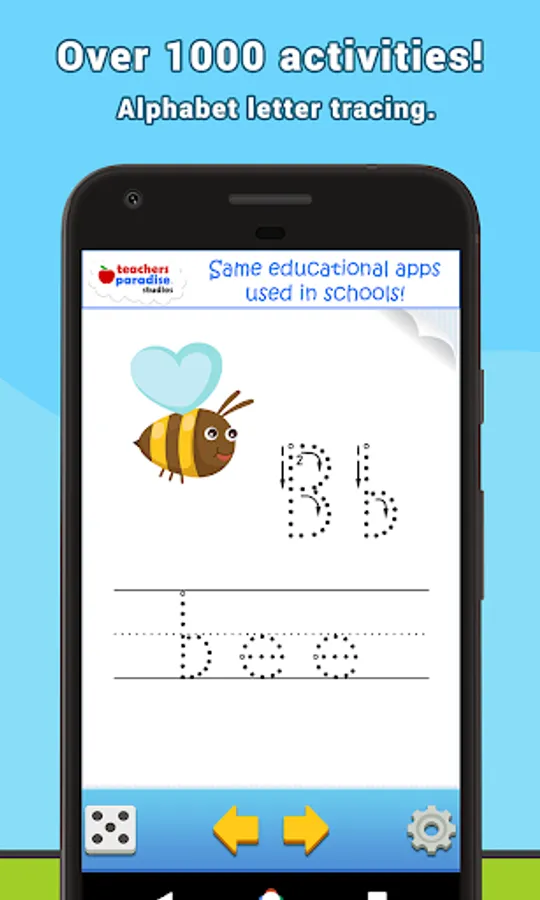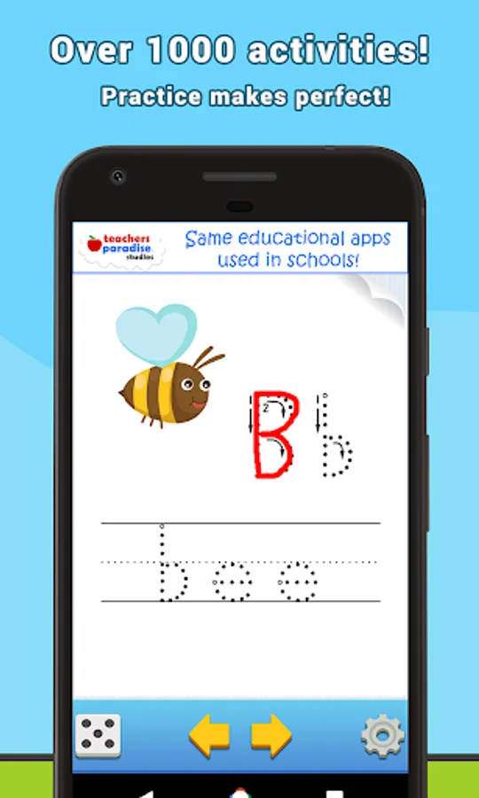 ★This educational game uses repetition to reinforce what has been taught. Starting with the basic Alphabet and using simple words associated via flashcards, then we help guide how to write the words that have already been introduced in the previous activities.