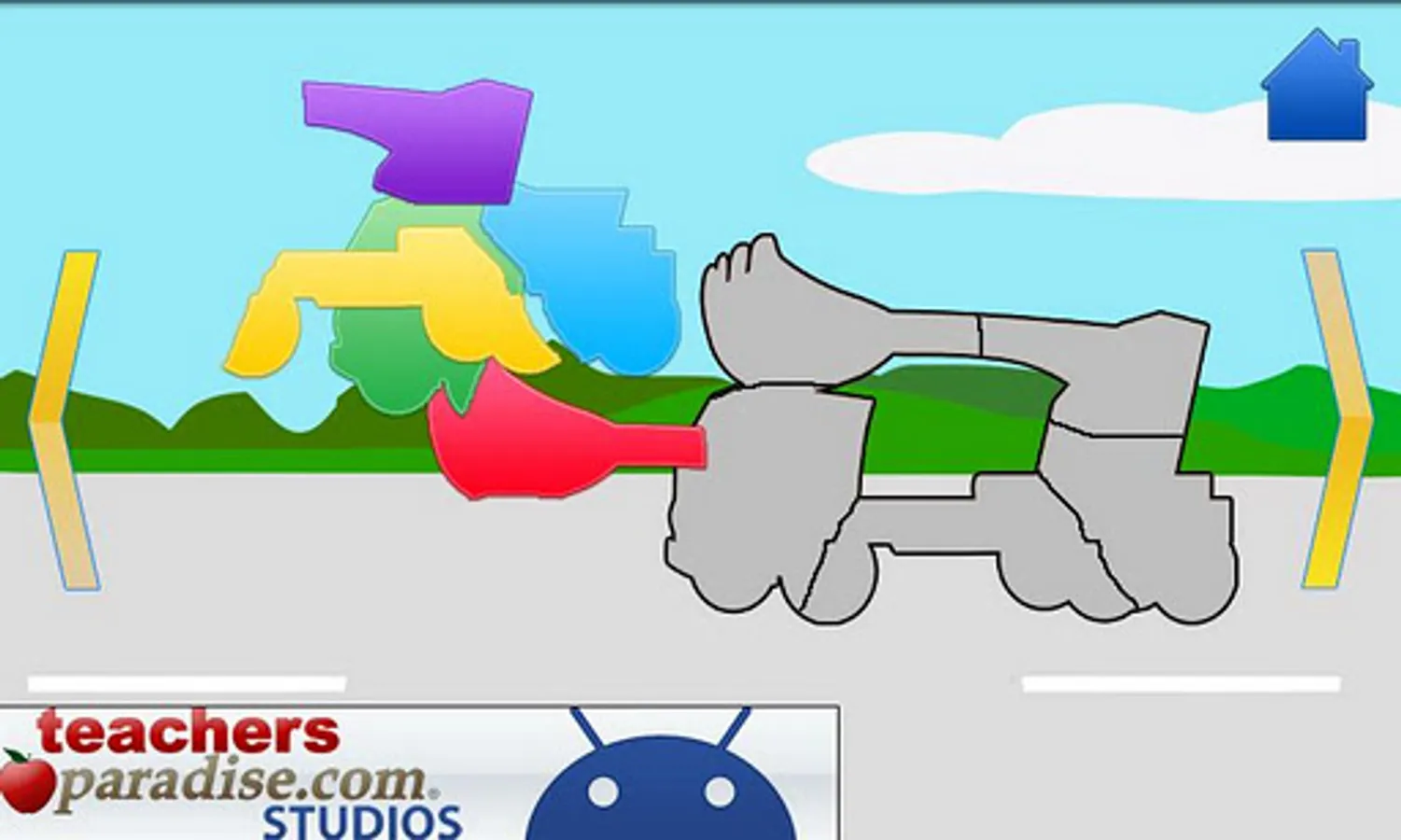 Trucks and Cars puzzles are fun for everyone. Besides puzzles being fun to build they help us with our fine motor skills and hand eye coordination. With the TeachersParadise.com Cars & Trucks Shape Puzzles have colorful puzzles pieces are easily snapped together to form cute and sometimes awesome vehicles. Some say the vehicle type while others honk! After the car or truck puzzle is complete, the name word will appear and the vehicle name will be heard. Want to play again? Just shake the phone to restart the puzzle or continue to a new one!