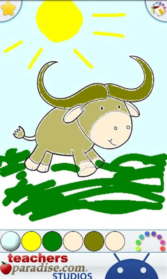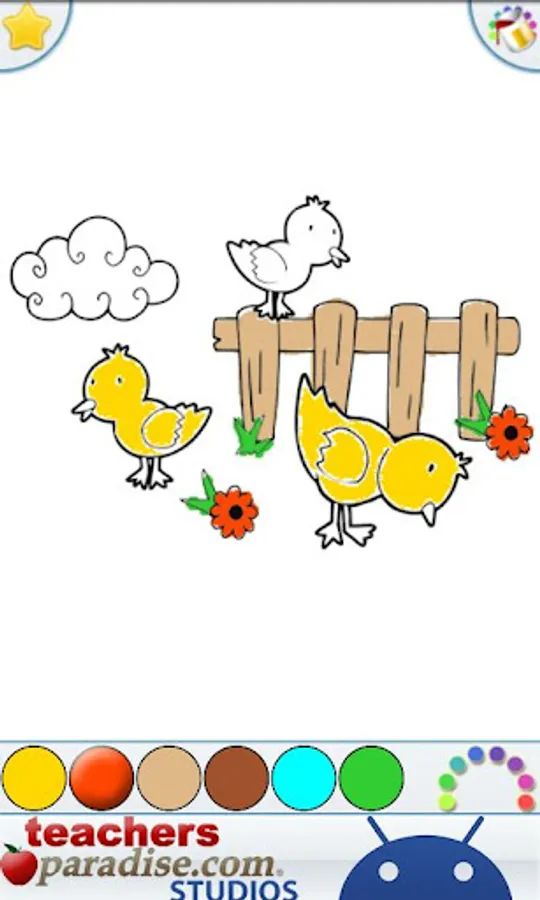 Share your coloring pages via email, text, Twitter, Facebook or any other service available for your Android Device.