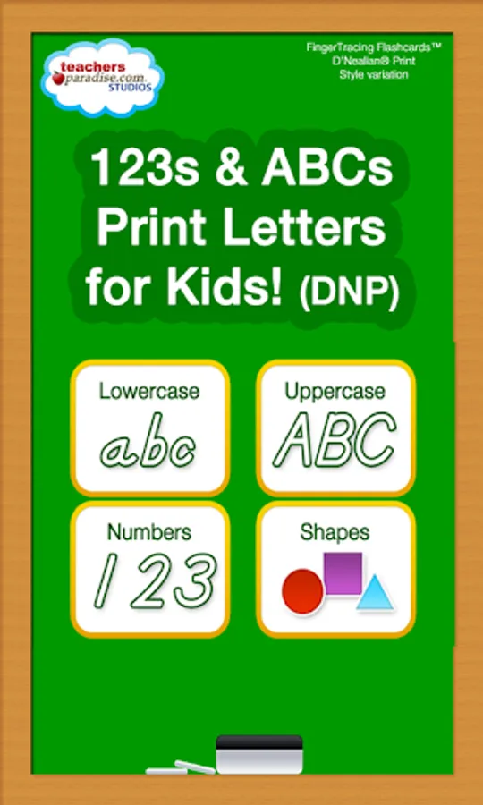 Practice the D'Nealian® handwriting style with ease. Trace the letter, hear the letter. Shake to erase & try again!