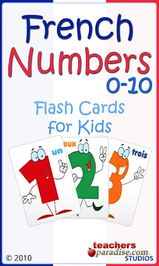 Learning to count in French is fun and easy with TeachersParadise.com French Numbers 0-10 flashcards!