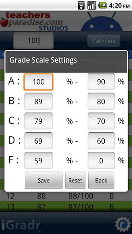 The iGradr™ Teacher Pocket Grader for Android™ is a simple and quick grading calculator.
