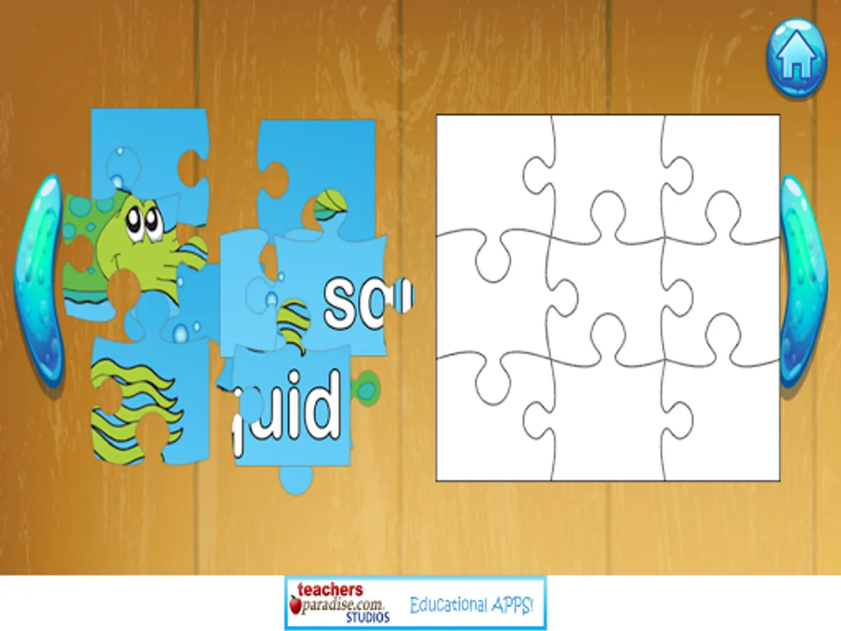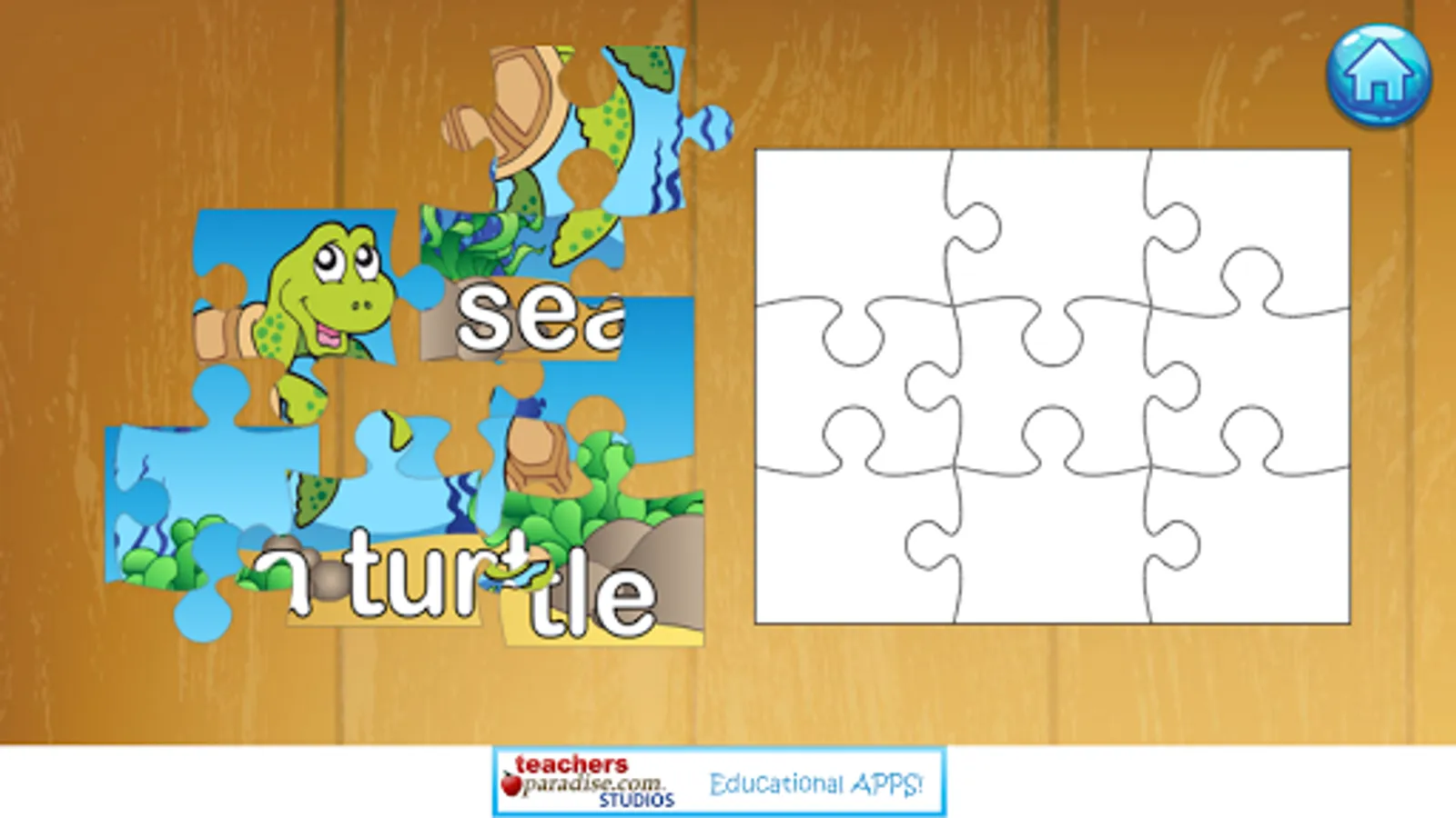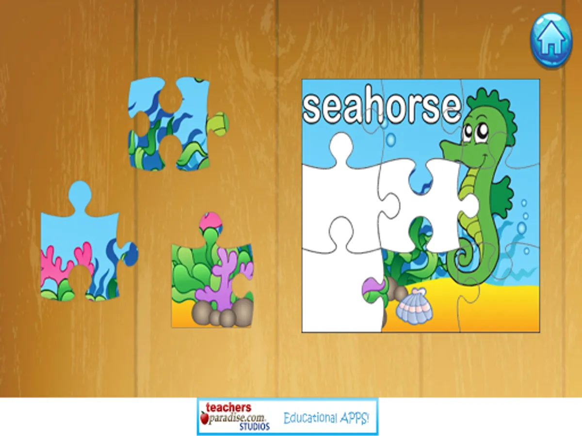 Dive into a world of learning with Ocean Jigsaw Puzzles from TeachersParadise.com Studios. Learning Ocean and Sea related words has never been easier or more fun! Our Ocean Jigsaw Puzzles help teach fine motor skills and ocean related vocabulary words. Colorful fun puzzles pieces are easily snapped together to form cute sea animals and scenes. After the jigsaw puzzle is complete a related words will be heard. Want to play again? Just shake the phone to restart the puzzle or continue to the next jigsaw puzzle!