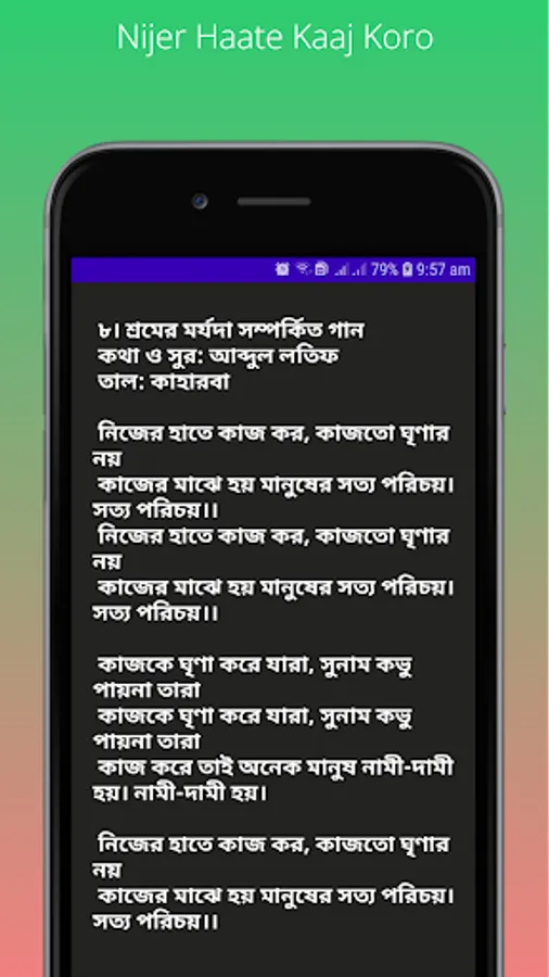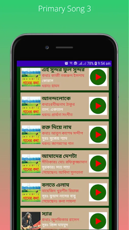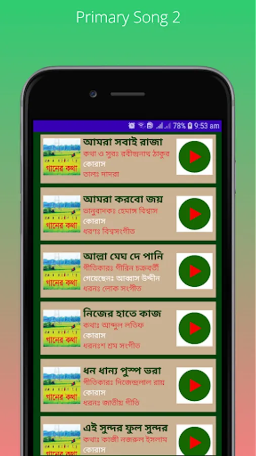 When a mother lulls her crying child to sleep by singing a lullaby, though the child does not understand the language of the song yet he deeply attracted to the melody, calms down instantly and falls asleep in his mother's lap. The child is tender. As the melody of the song attracts his mind so on the other hand it also affects his mind. Therefore, music has been included as one of the 12 compulsory subjects at the primary level by realizing the need for music practice to develop the human qualities of the child. At a very young age he will know that no task is small through music. His respect will be awakened to every work, to every working man what is desirable to all. All respected primary school teachers and trainees of PTI or DPD have to play these songs every single day, these songs also have to play on different national days as well. I hope you will like these songs and will be useful must. Through this Primary Songs application you can play all primary school songs offline without any mobile data or WIFI. You can know the name of the great song's lyricist, composer and artists. You can see the lyrics of each song accurately to sing. The rhythm or taal of the song has also been added. This is our tribute to all the respected songwriters, composers, artists and all related one. Music as a means of expressing emotions permeates all levels of society. Music is a constant companion in the festival of daily life. Music enriches human life. Awakens genuine consciousness. Let music be the covering of human life's laughter, tears, joy, pain and happiness. Stay safe and take care. All the best.