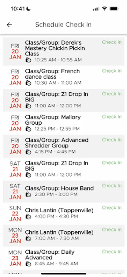 Check In: Put on tablet so students can search their name and check in for private lessons or group classes