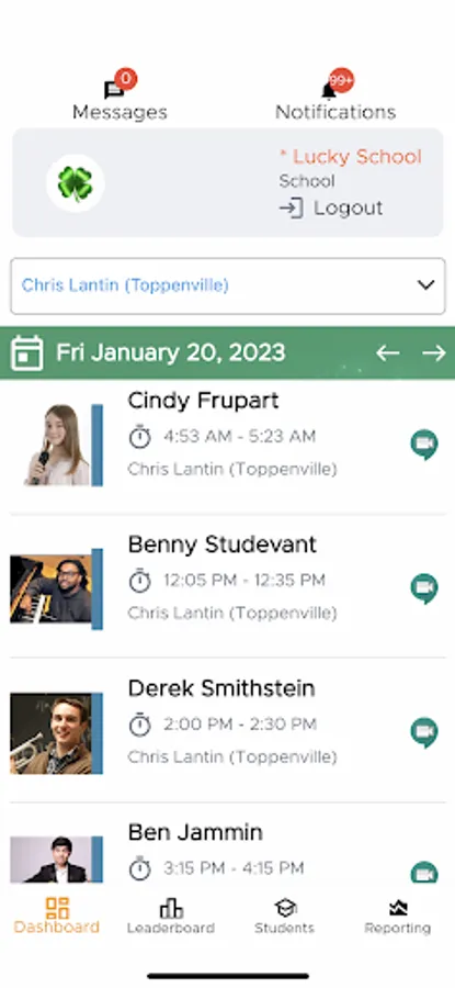This App is designed for TeacherZone Schools. It includes a Front Desk that allows for students to easily check in on a phone or tablet when they arrive for private or group lessons. Also, it allows Administrators to manage all students for the day including take attendance, make notes and schedule changes. It also includes leaderboards for gamification, chat with Students and Parents and Attendance and Payment Reporting.
